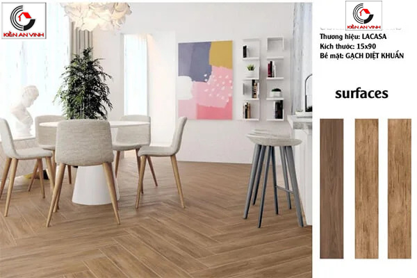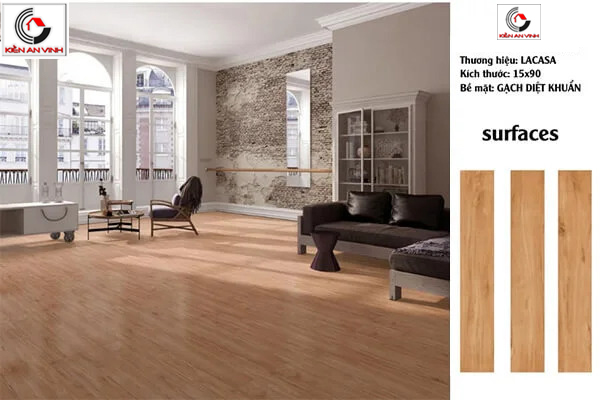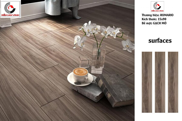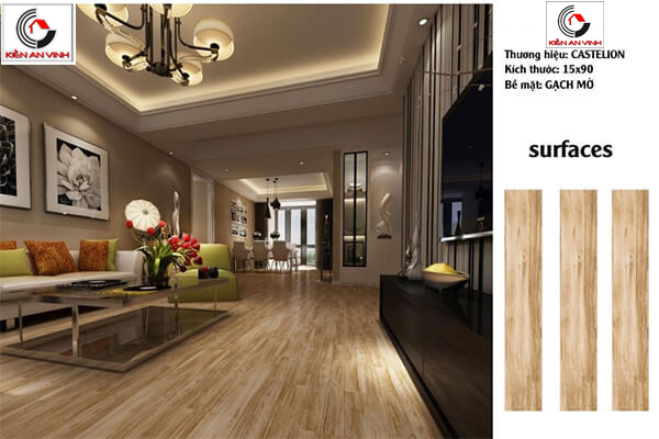 Khả năng tái hiện chân thực của họa tiết còn giúp gạch giả gỗ dễ dàng hòa nhập với nhiều phong cách thiết kế từ cổ điển, tân cổ điển đến hiện đại, minimalism. Khi lát trên diện rộng, những viên gạch 15x90cm giúp tạo nên bề mặt tinh tế như một tấm sàn gỗ nguyên khối, mang lại cảm nhận mềm mại, tự nhiên, gần gũi với thiên nhiên, góp phần làm tăng giá trị thẩm mỹ cho toàn bộ không gian sống hay làm việc.