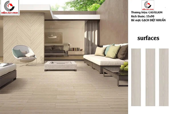 Một trong những ưu điểm không thể bỏ qua của gạch giả gỗ 15x90cm là tính an toàn, đặc biệt phù hợp cho các gia đình có trẻ nhỏ và người lớn tuổi. Nhiều sản phẩm gạch trên thị trường được thiết kế với bề mặt men mờ hoặc nhám nhẹ giúp tăng ma sát và hạn chế nguy cơ trơn trượt, giảm thiểu tai nạn đáng tiếc xảy ra trong sinh hoạt hàng ngày. Đây là điểm cộng lớn so với các loại gạch men trơn hay sàn gỗ dễ trượt.