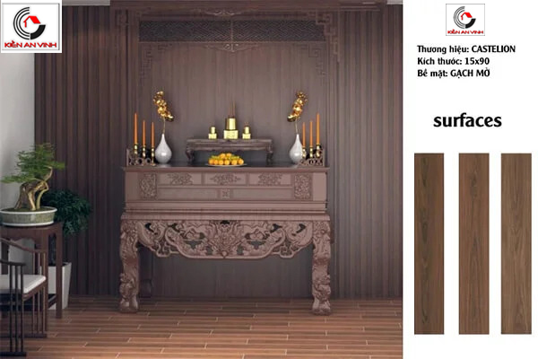 Ngoài ra, gạch giả gỗ còn rất thích hợp cho các công trình thương mại như nhà hàng, khách sạn, văn phòng hay các trung tâm mua sắm, nhờ độ bền cao và khả năng chống trơn trượt tốt. Với diện tích 15x90cm, sản phẩm vừa tạo cảm giác mở rộng không gian nhờ kích thước dài vừa mang đến tính thẩm mỹ của gỗ tự nhiên, góp phần nâng tầm giá trị công trình và tạo ấn tượng ngay từ cái nhìn đầu tiên cho khách hàng hay đối tác.