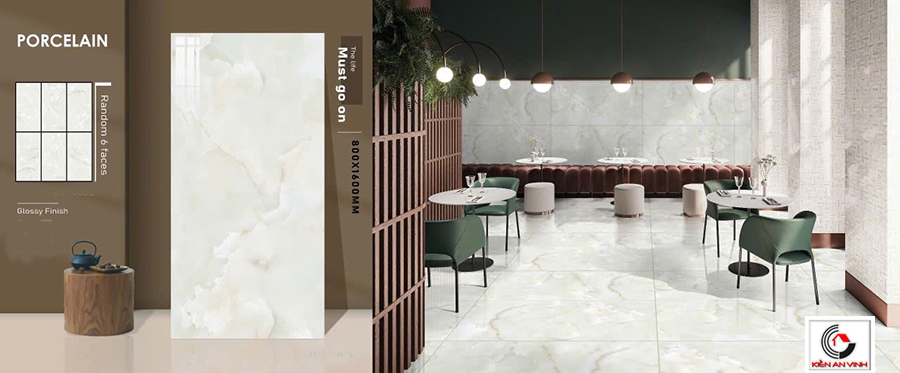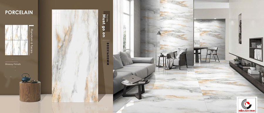 Tóm lại, mẫu gạch Porcelain Khổ Lớn 80x160cm với bề mặt bóng, chuyên dùng để ốp lát các không gian yêu cầu độ sang trọng và tính thẩm mỹ cao nhất.
