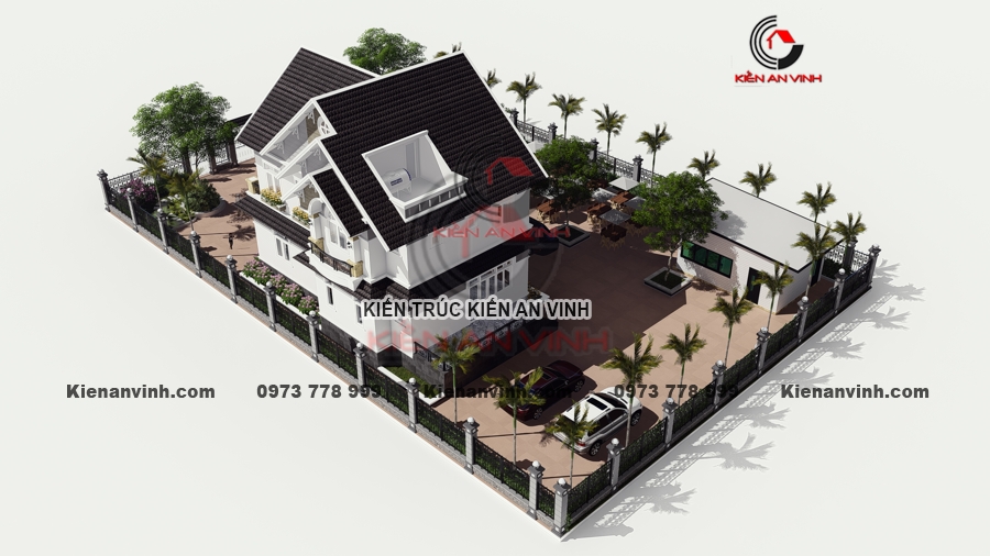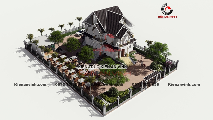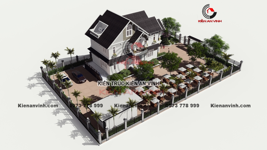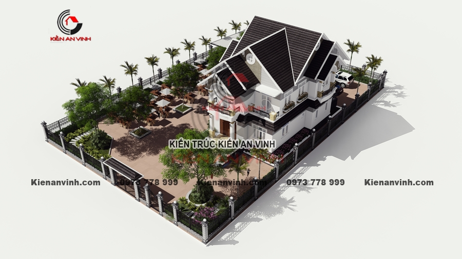 Ý tưởng thi công biệt thự mái thái 2 tầng tân cổ điển pha hiện đại kết hợp quán cafe sân vườn là một giải pháp tận dụng không gian và tạo nguồn thu nhập tăng thêm rất hiệu quả.