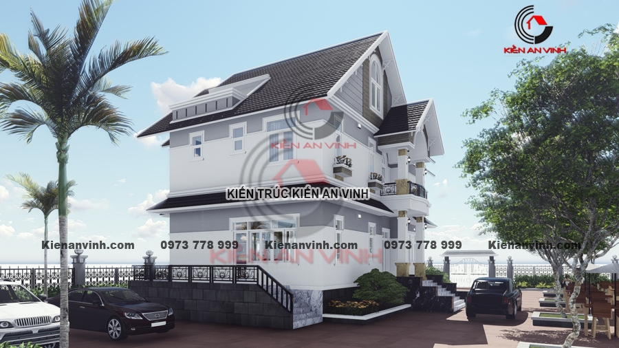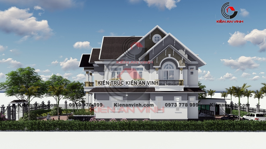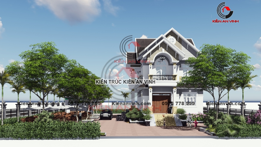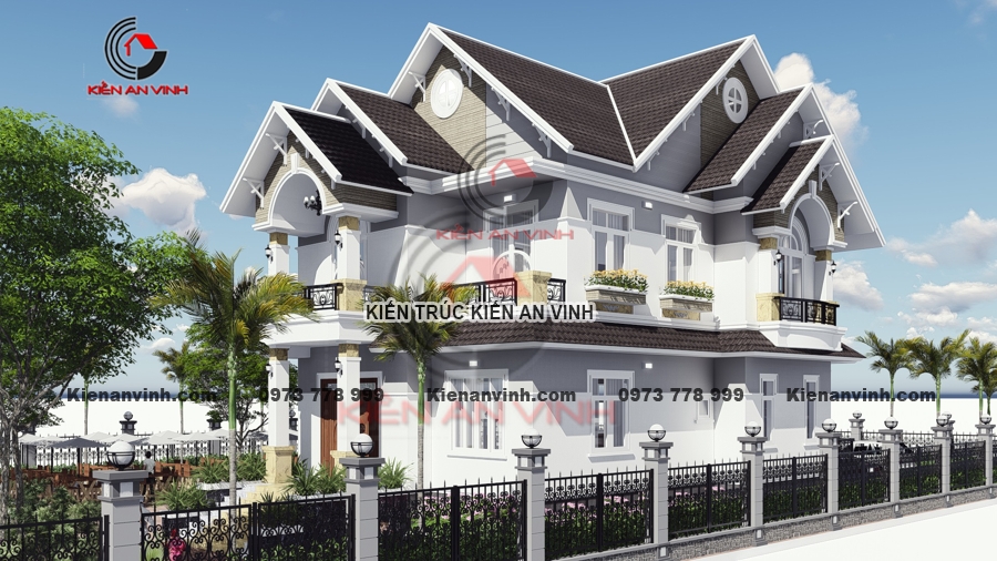 Ngoại thất biệt thự mái thái 2 tầng tân cổ điển pha hiện đại là sự pha trộn khéo léo giữa các yếu tố cổ điển và hiện đại, tạo nên tính thẩm mỹ độc đáo và không gian tao nhã.