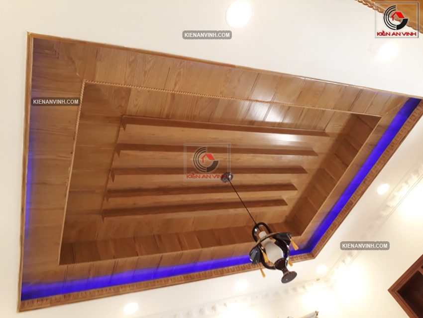 Trần nhà ốp gỗ tự nhiên sang trọng