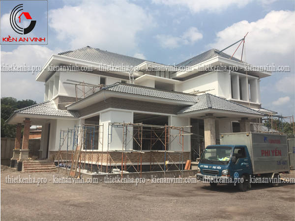 Thi công phần thô biệt thự vườn 2 tầng 3 mặt tiền mái nhật hiện đại 24x20m có sân vườn ở Long Thành