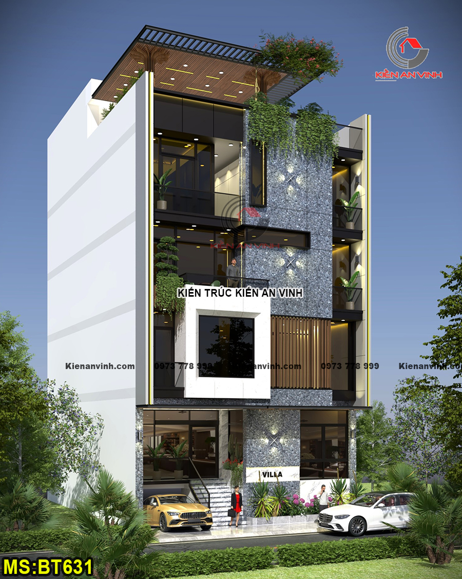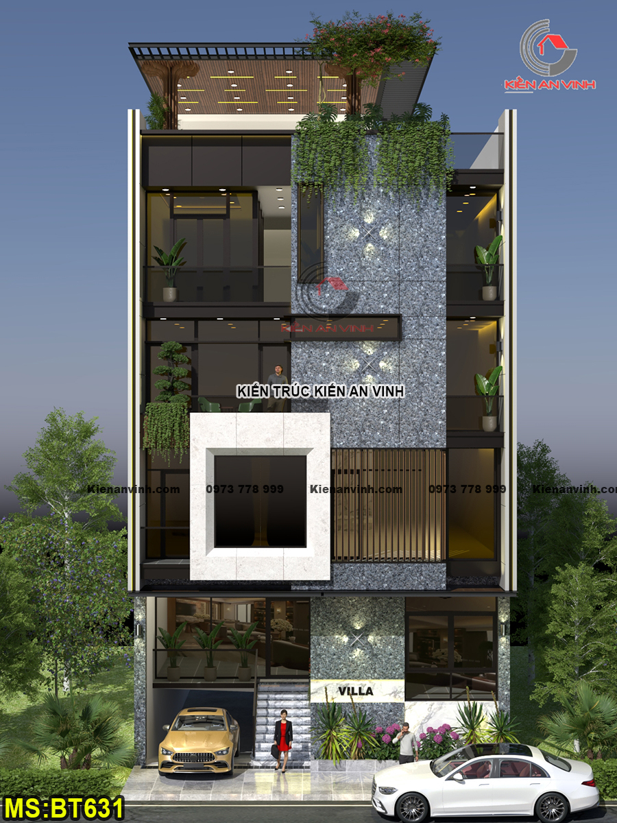 Với phong cách thiết kế biệt thự phố 4 tầng mái bằng hiện đại, tối ưu công năng, dựa trên những ý tưởng đột phá về mặt kiến trúc và kỹ thuật, mẫu biệt thự 10x15m tại Dĩ An đã thể hiện rõ đẳng cấp của cuộc sống đô thị cao cấp. Từ mặt tiền ốp đá granite, mái lam sân thượng, ban công xanh mát cho tới hệ thống tầng hầm và thang máy nội thất, tất cả đều hướng tới sự tiện lợi, an toàn, thẩm mỹ và thân thiện môi trường. Đây thực sự là mẫu nhà lý tưởng dành cho gia đình trẻ, yêu thiên nhiên, mong muốn kiến tạo không gian sống hoàn mỹ, đậm phong cách hiện đại.
