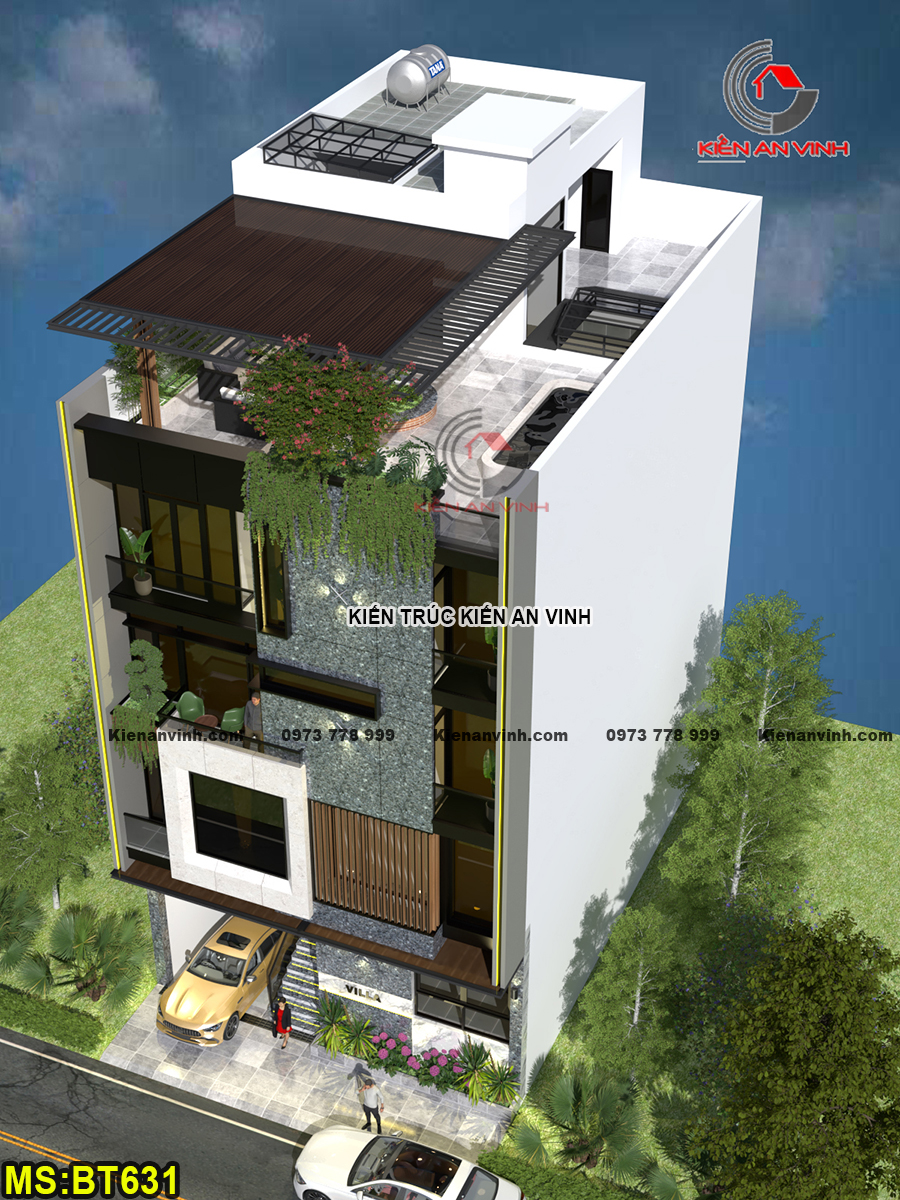 Với mẫu thiết kế biệt thự phố 4 tầng mái bằng hiện đại này, gia chủ có thể dễ dàng xây dựng không gian sống đẳng cấp, tiện nghi và thân thiện với môi trường. Phong cách hiện đại pha chút tinh tế trong từng chi tiết thiết kế mang lại cảm giác thư thái và thể hiện rõ gu thẩm mỹ của gia đình.