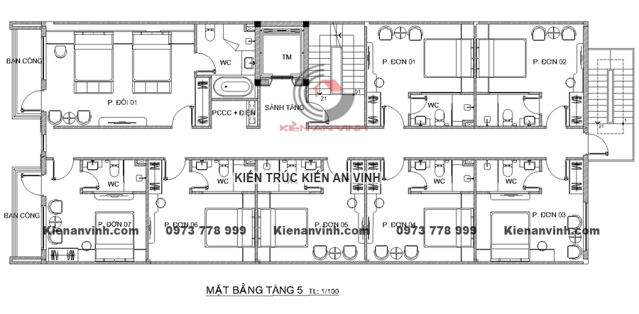 Công năng tiện ích Tầng 2 – 5: bố trí các phòng nghỉ tiêu chuẩn, có ban công, toilet riêng và hệ thống thông gió – chiếu sáng tự nhiên.