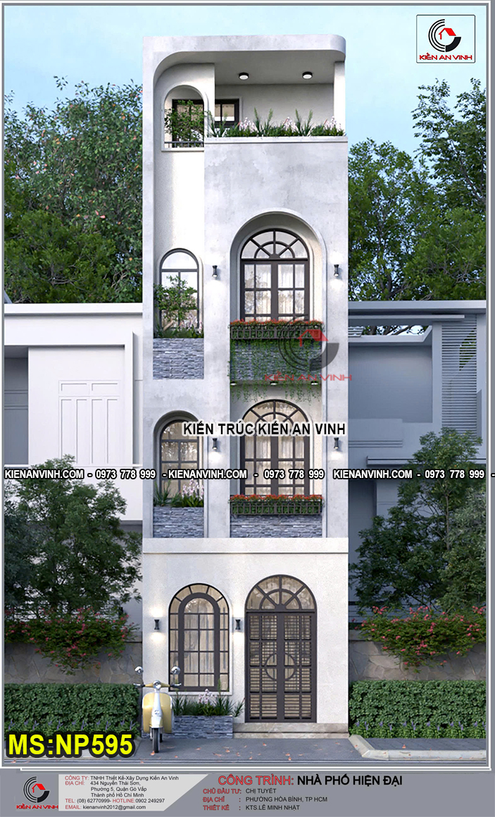 Thiết kế nhà ống 3 tầng 1 tum hiện đại là xu hướng được nhiều gia đình trẻ lựa chọn bởi tính tiện nghi, thẩm mỹ và tối ưu không gian sống. Mẫu nhà ống 3 tầng 1 tum hiện đại 4x9m ở Phường Hòa Bình mang đến vẻ đẹp thanh lịch, tinh tế và tiện nghi cho gia chủ. Với phong cách kiến trúc pha trộn nhẹ nhàng giữa hiện đại và hơi hướng châu Âu, ngôi nhà là điểm nhấn nổi bật giữa khu phố, nhờ những đường cong mềm mại ở hệ cửa vòm và sự bố trí khoa học các không gian chức năng. Qua bài viết này, chúng ta sẽ cùng khám phá chi tiết về thiết kế cũng như các điểm nhấn đặc biệt giúp mẫu nhà ống này thỏa mãn mọi nhu cầu của cuộc sống hiện đại.