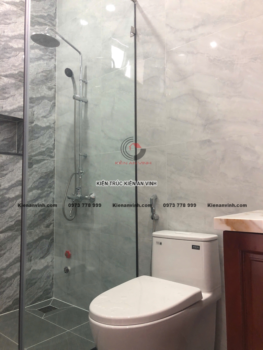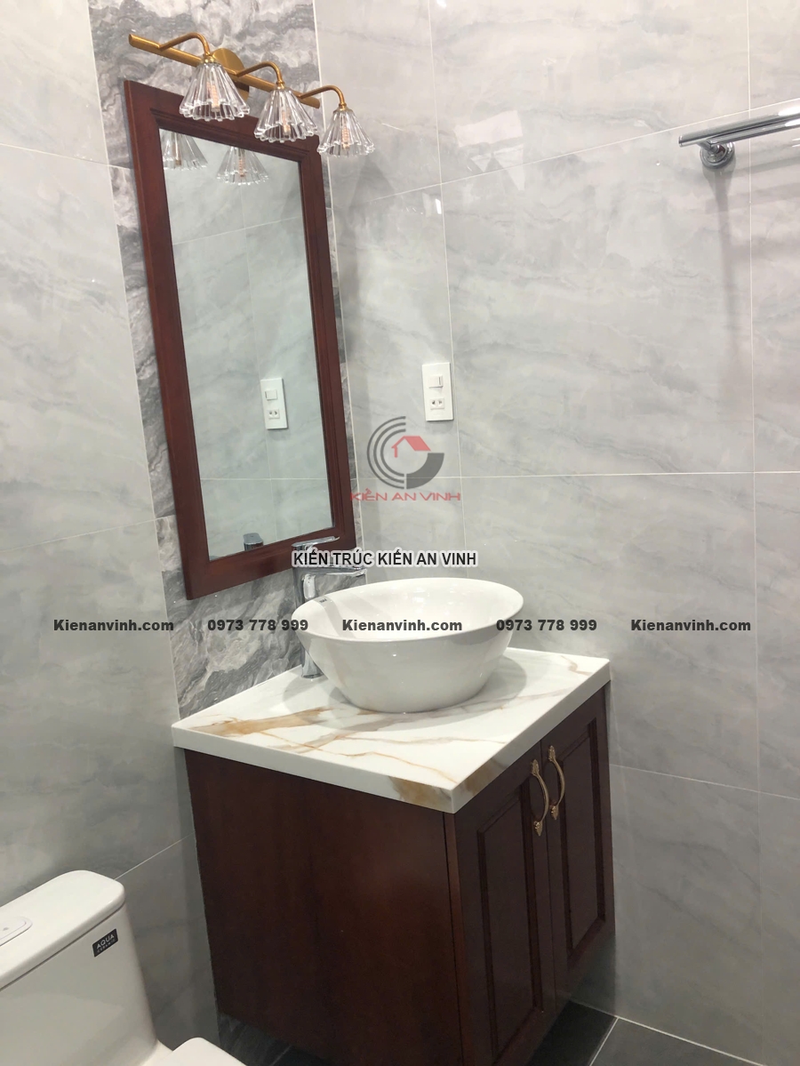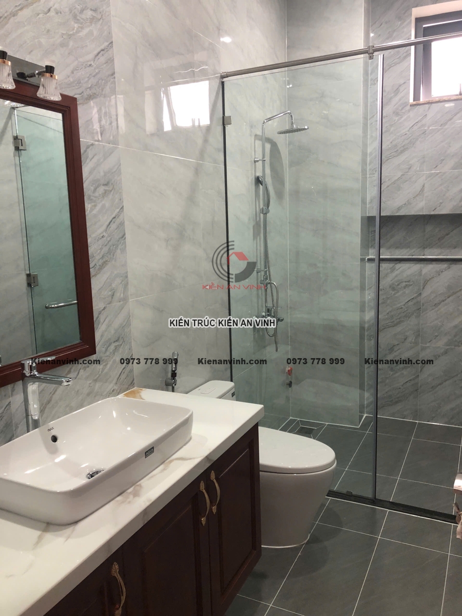 Nhà vệ sinh trong biệt thự 2 tầng được thiết kế tối giản nhưng không kém phần tiện nghi, đáp ứng nhu cầu sử dụng cao trong cuộc sống hiện đại.