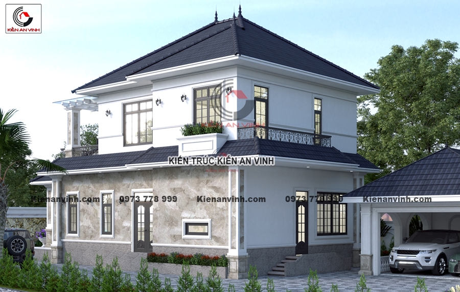 Sự kết hợp giữa hình khối, họa tiết cổ điển và đường nét hiện đại tạo nên chiều sâu không gian, mang lại cảm giác vừa sang trọng vừa ấm áp, góp phần nâng tầm đẳng cấp cho biệt thự.