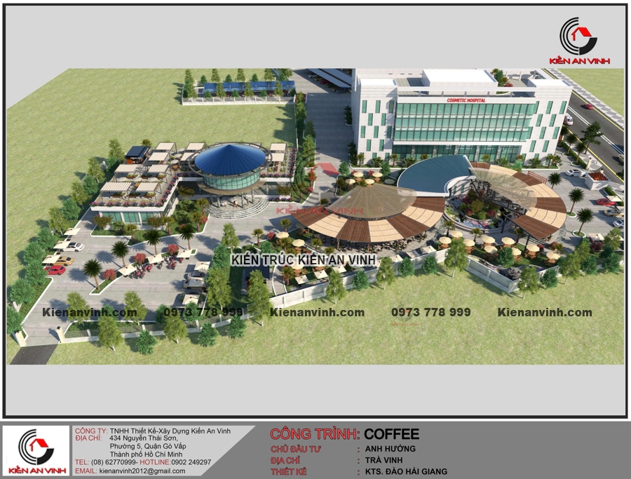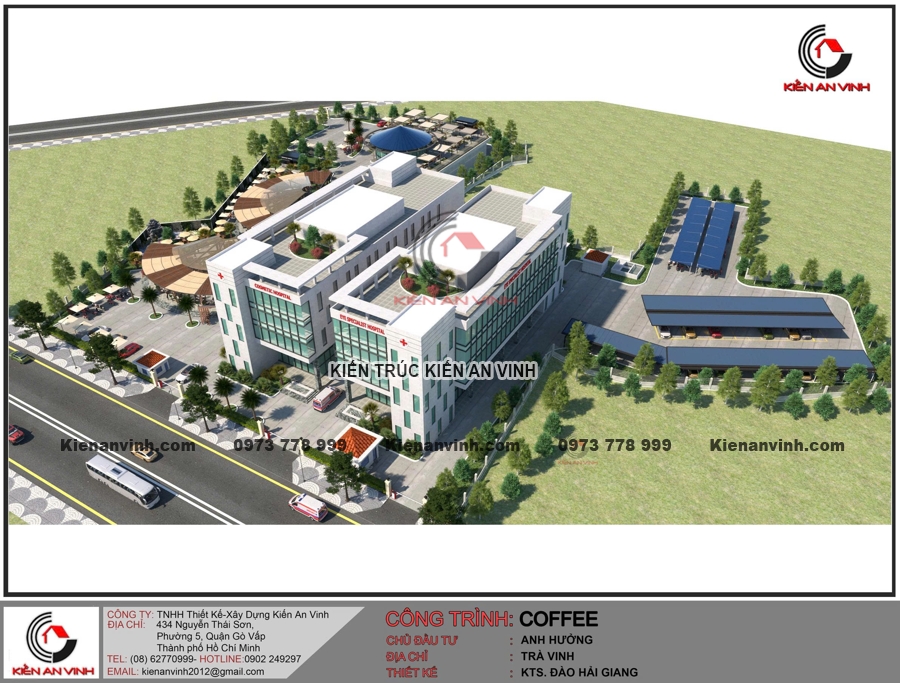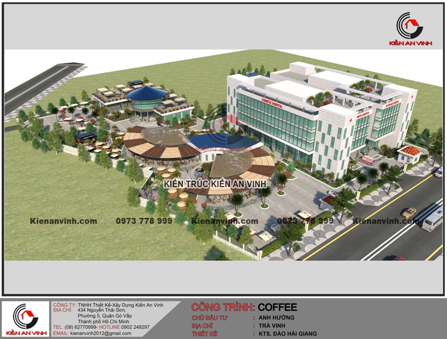 Mẫu thiết kế bệnh viện kết hợp quán cafe sân vườn hiện đại ở tỉnh Trà Vinh