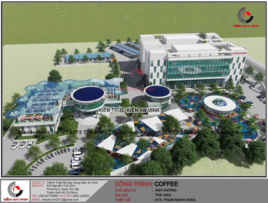 Mẫu thiết kế bệnh viện kết hợp quán cafe sân vườn tại Trà Vinh là minh chứng sống động cho sự đổi mới trong lĩnh vực thiết kế công trình y tế. Với phong cách kiến trúc hiện đại, bố trí cảnh quan thông minh, tối ưu ánh sáng tự nhiên và các tiện ích đa dạng, công trình mang lại không gian chữa bệnh vừa thân thiện vừa thư giãn
